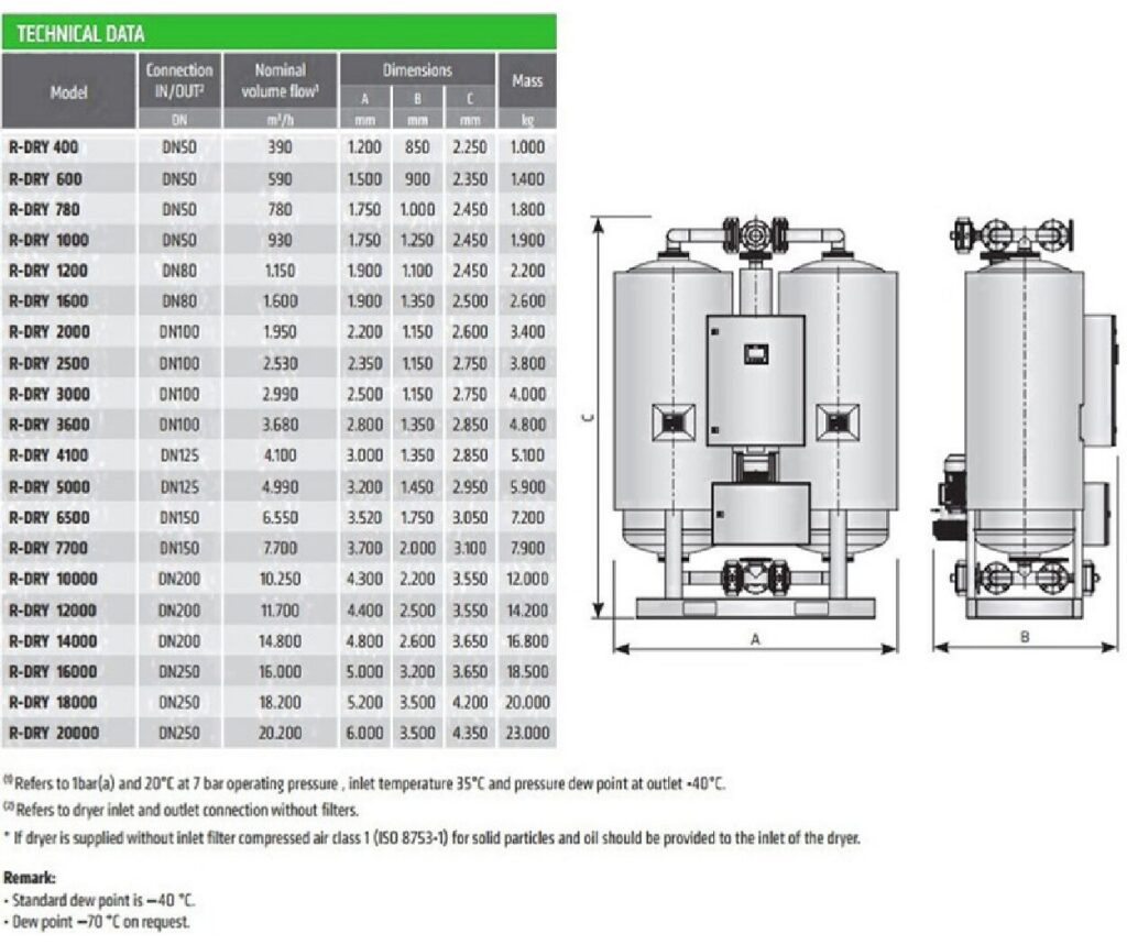 HEAT REGENERATION ADSORPTION DRYERS – COOLING WITH AMBIENT AIR – R-DRY BVA